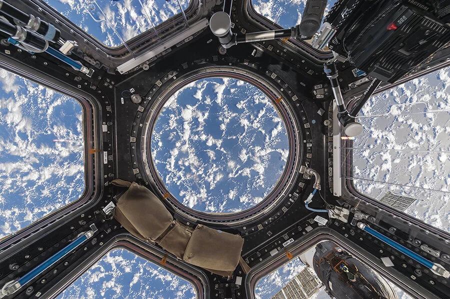 Cupola with Clouds International Space Station, Low Earth Orbit, Space, by Paolo Nespoli and Roland Miller, image courtesy of NASA and ASI